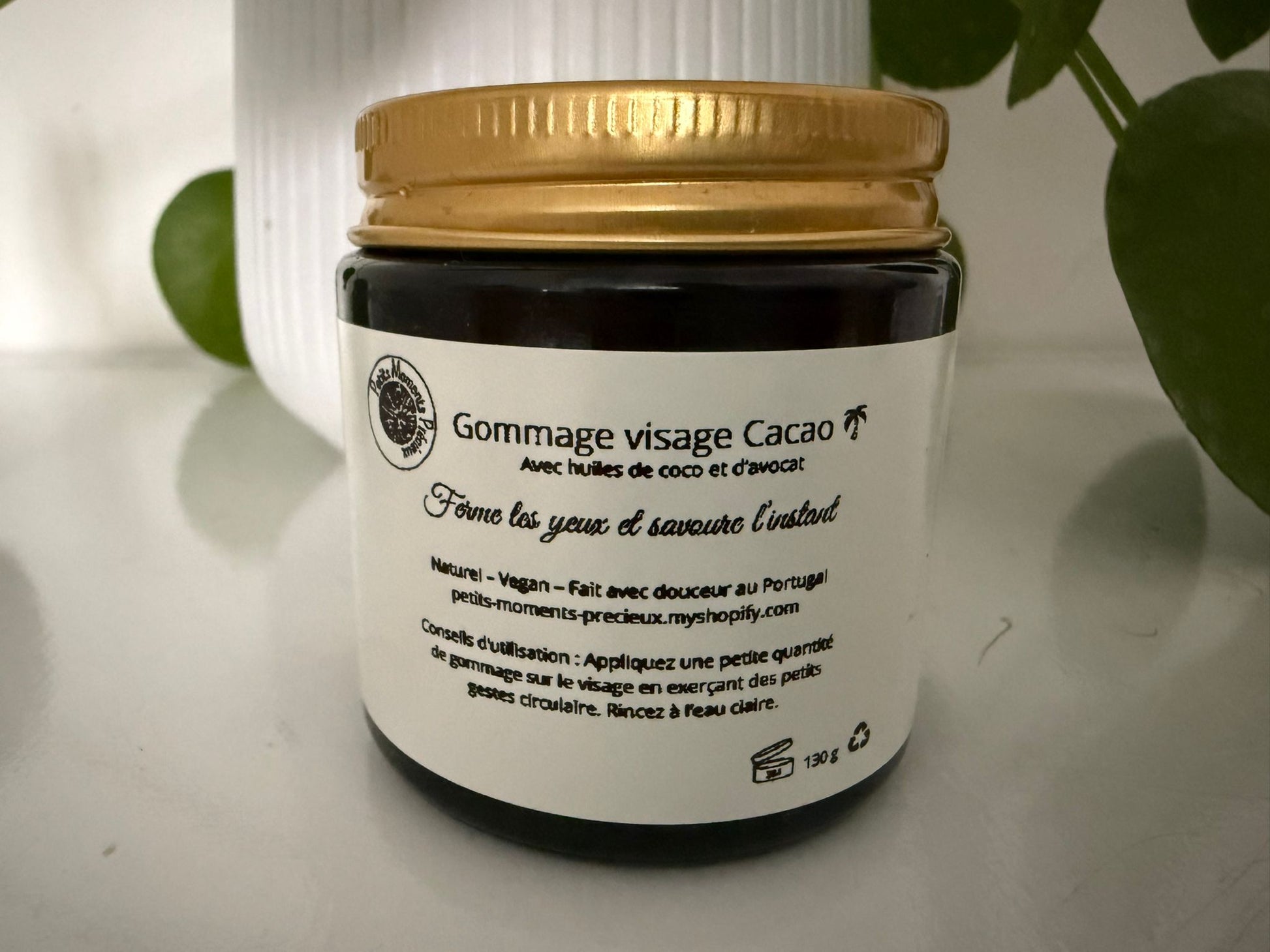 ✨ Gommage visage Pin & Cacao – élimine les impuretés et affine le grain de peau naturellement.